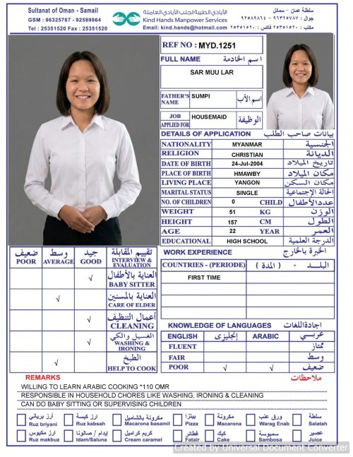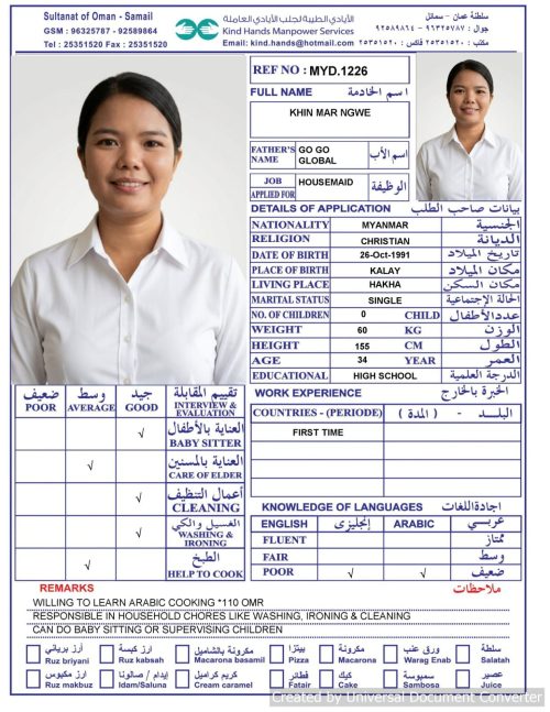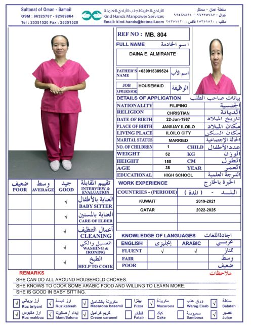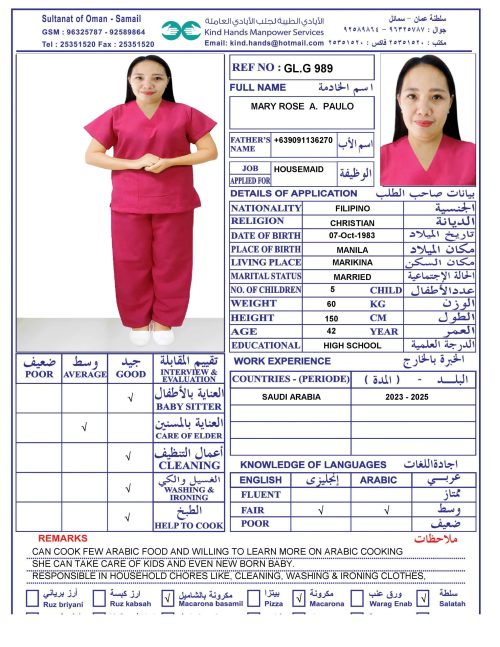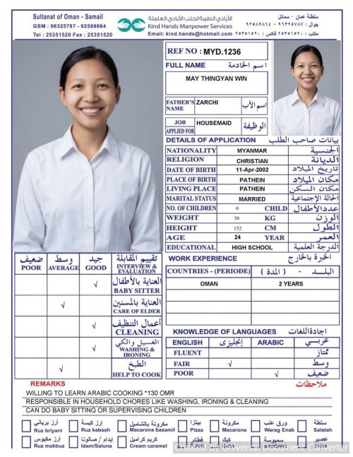 توفير خدمة توصيل العاملة من مطار مسقط إلى باب المنزل داخل حدود مسقط فقط.