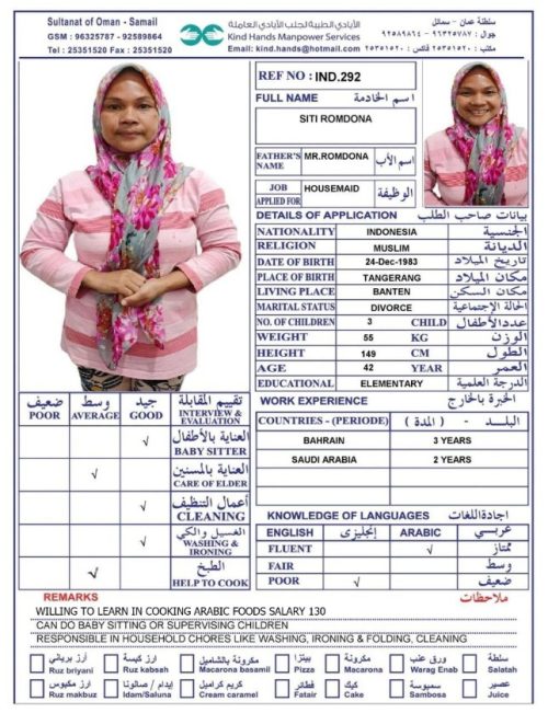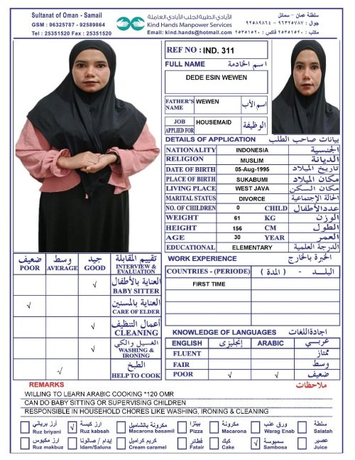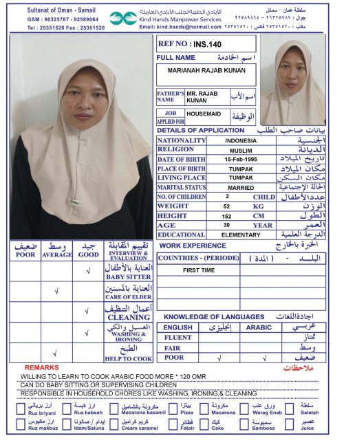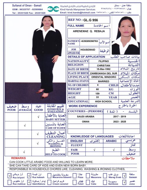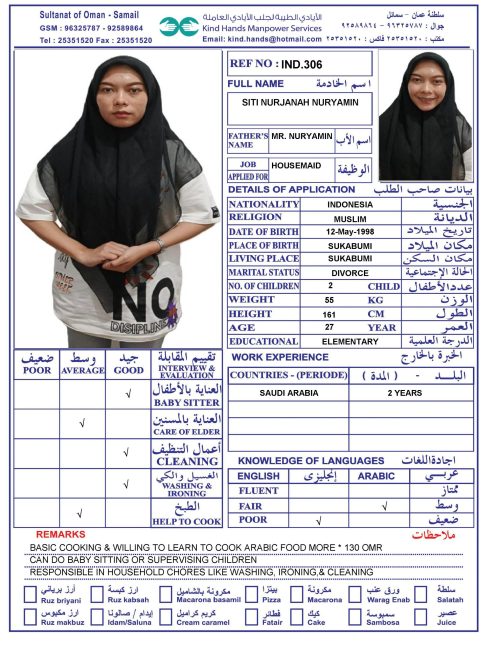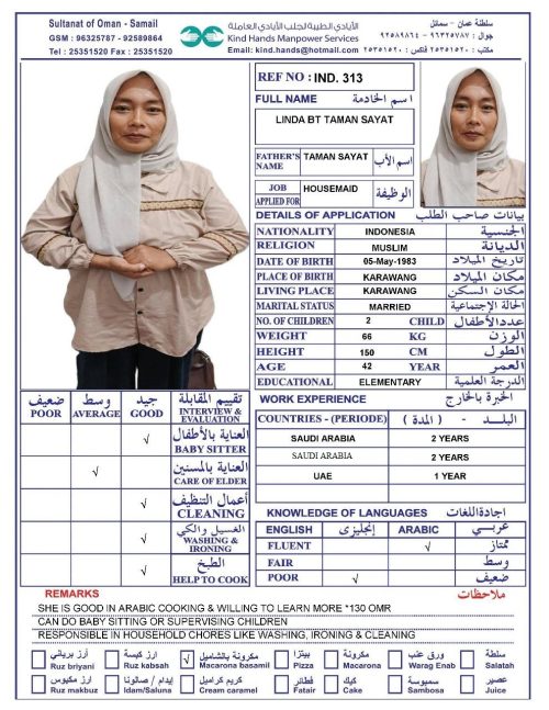 Housemaid transportation service to Salalah and Musandam is available.
